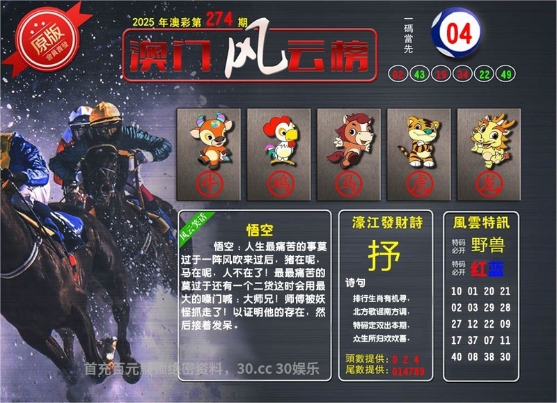 274期:六肖中特〖马猪兔龙鸡蛇〗开:狗44错 |